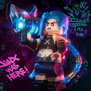 Jinx from League of Legends with additional text treatment.